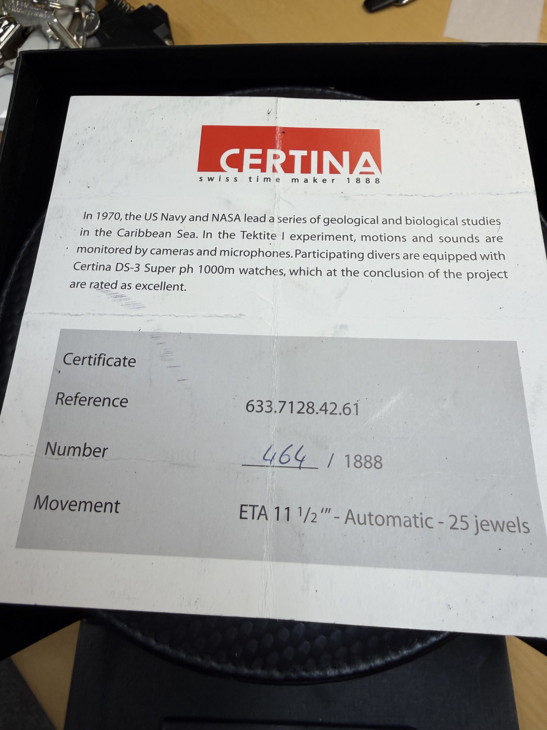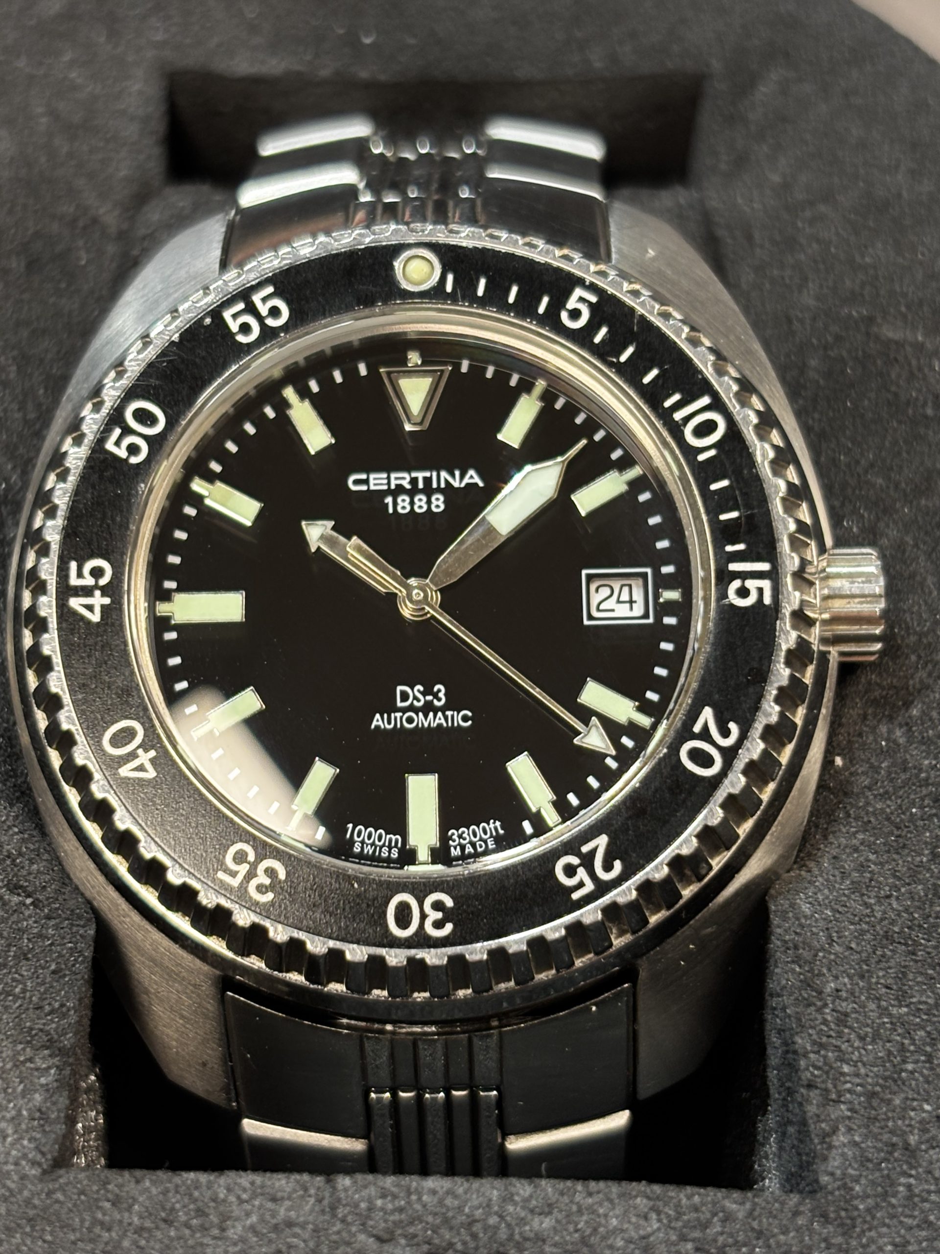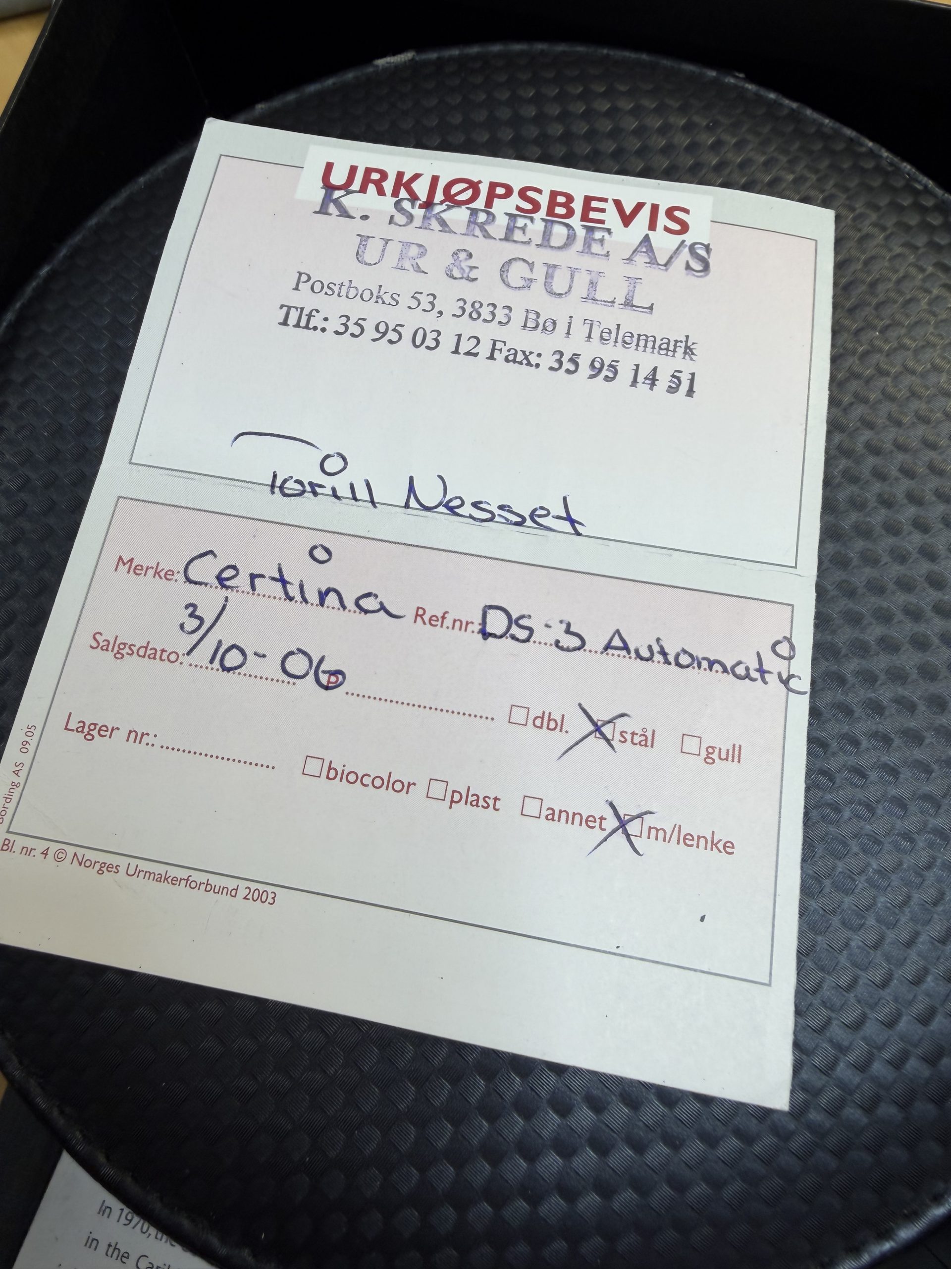 Svært tøff og uvanlig Certina DS-3 Automatic fra 2006 – en ekte toolwatch bygget for ekstreme forhold. Dette er en modell som sjelden dukker opp helt komplett, og representerer noe av det mest robuste Certina har laget.