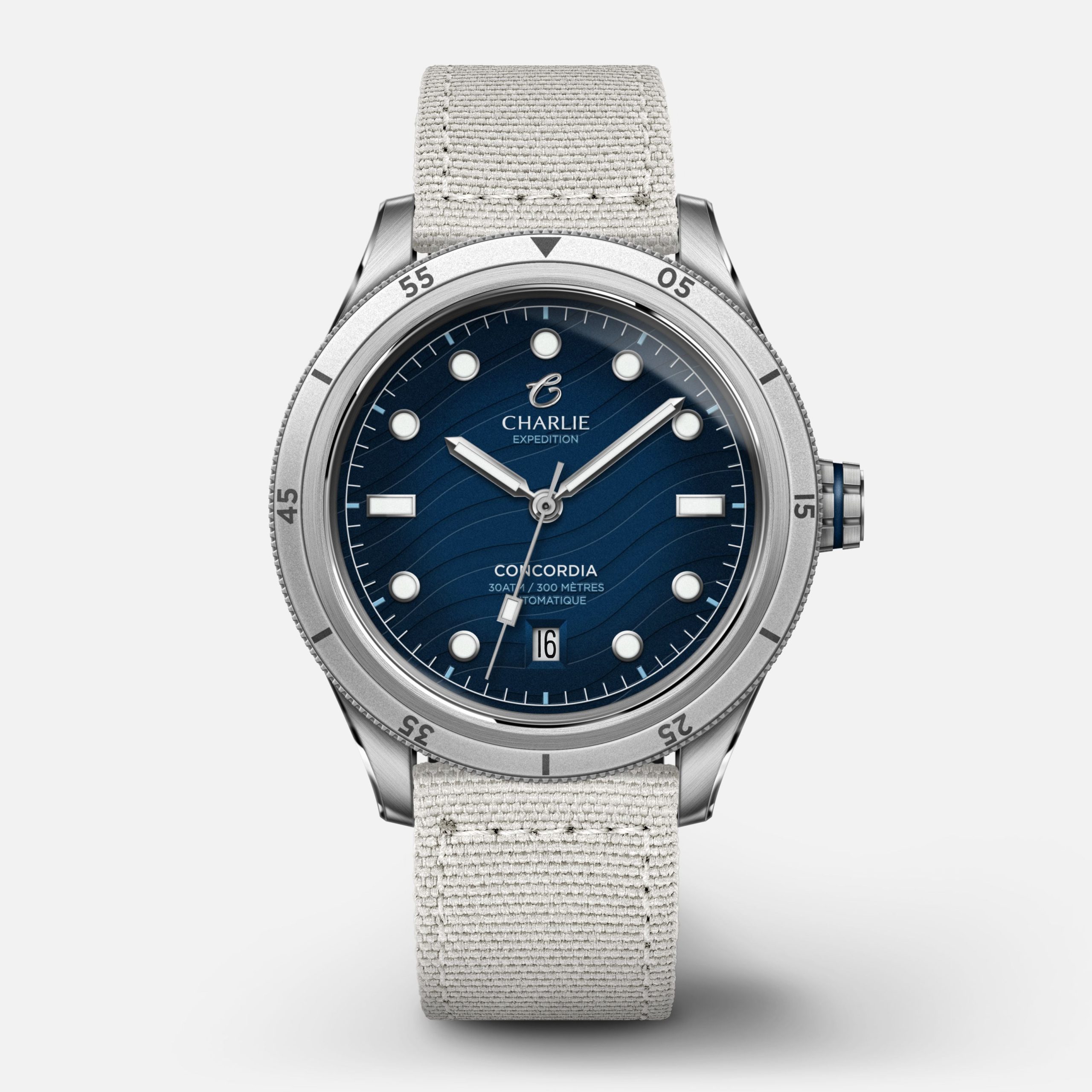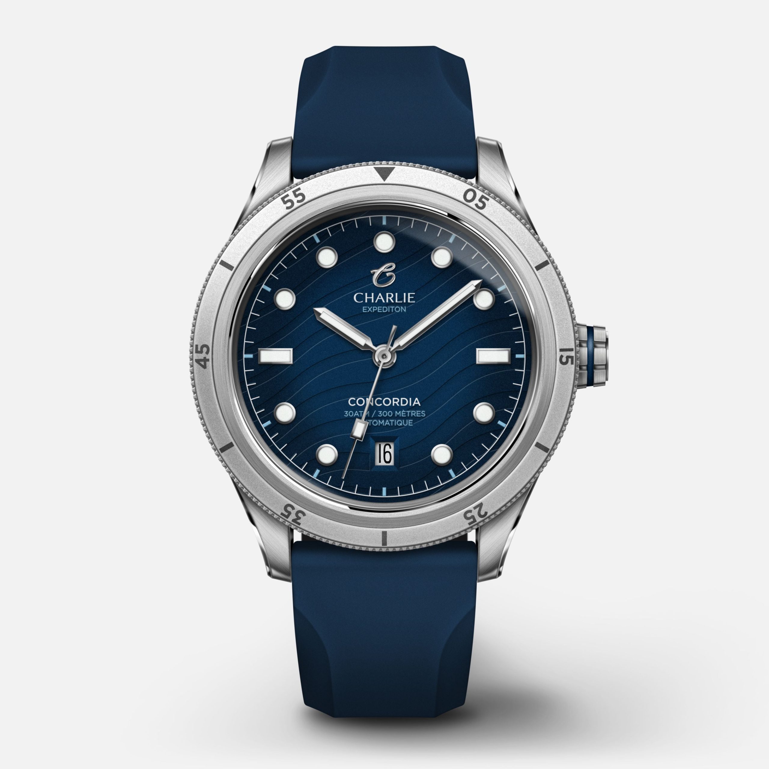 Designet og montert i Frankrike, utstyrt med det sveitsiske Soprod P024 automatiske urverket, vanntett ned til 300 m. Denne herreklokken med 40 mm diameter har en roykfarget bla urskive med bolgemonster og gjennomsiktig bakside. En sporty klokke som finner en perfekt balanse mellom styrke og raffinement.
