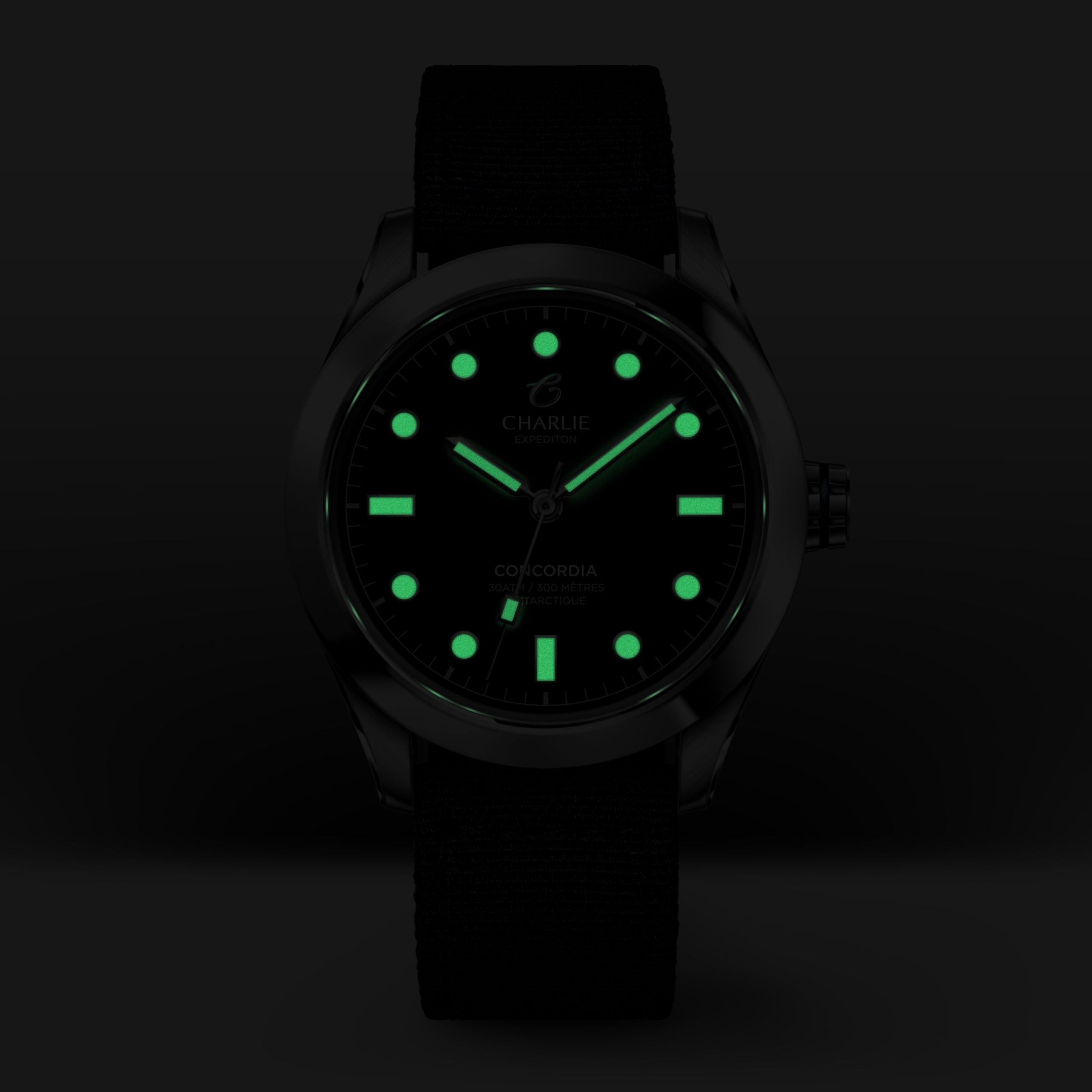 - Glass: Kuppelformet safirglass, antirefleks, 3 mm tykt