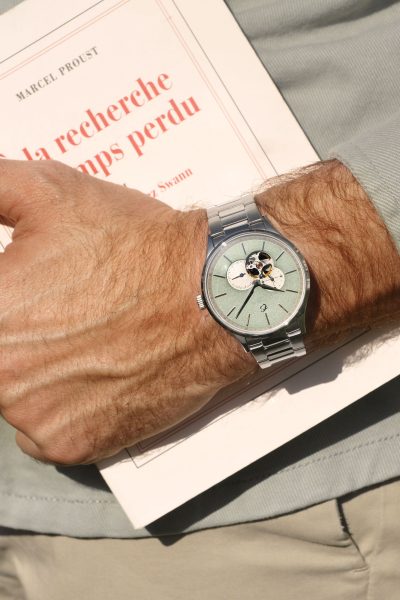 Designet og montert i Frankrike. Denne automatiske herreklokken har en gul Yellow Sunshine skive med åpent hjerte (open heart) som viser urverkets mekanikk. Rene linjer forener klassisk og moderne estetikk. Utstyrt med Citizen Miyota Calibre 82S7 automatisk urverk. 40mm kasse i 316L rustfritt stål med safirglass og utbyttbare reimer. Begrenset opplag på 50 eksemplarer.