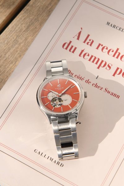 Designet og montert i Frankrike. Denne automatiske herreklokken har en gul Yellow Sunshine skive med åpent hjerte (open heart) som viser urverkets mekanikk. Rene linjer forener klassisk og moderne estetikk. Utstyrt med Citizen Miyota Calibre 82S7 automatisk urverk. 40mm kasse i 316L rustfritt stål med safirglass og utbyttbare reimer. Begrenset opplag på 50 eksemplarer.