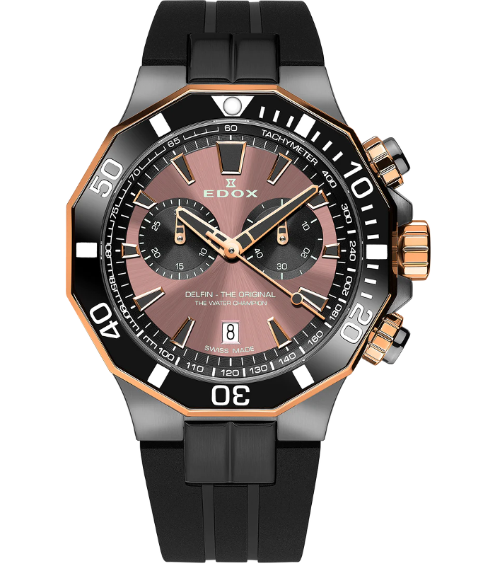 EDOX DELFIN THE ORIGINAL CHRONOGRAPH – Til en bedre pris er en sporty kronograf fra Edox som kombinerer presisjon med dynamisk design.