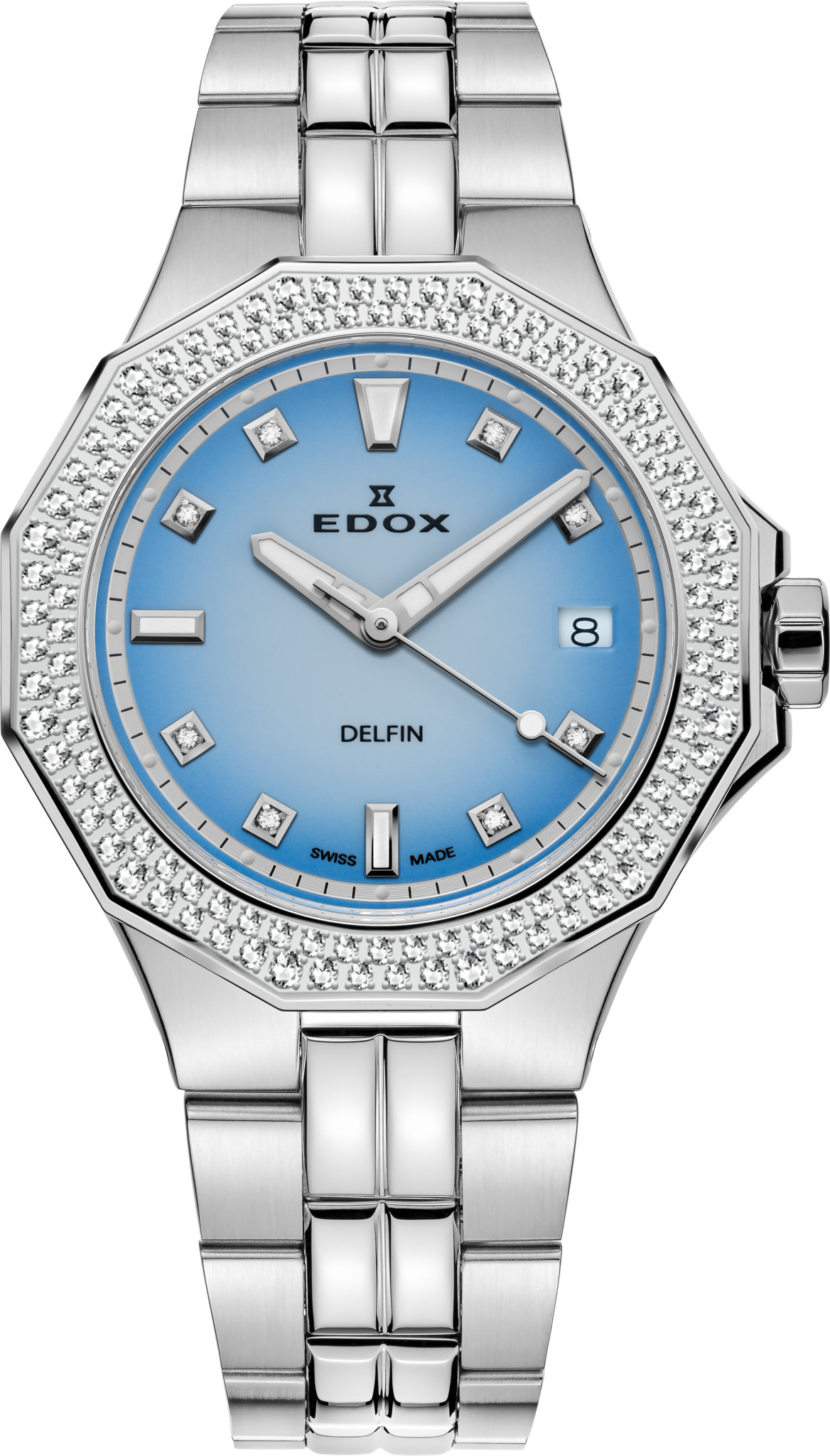 EDOX DELFIN THE ORIGINAL DIVER DATE LADY – Kun forhåndsbestilling er en imponerende dykkerklokke fra Edox som kombinerer robust konstruksjon med elegant design.