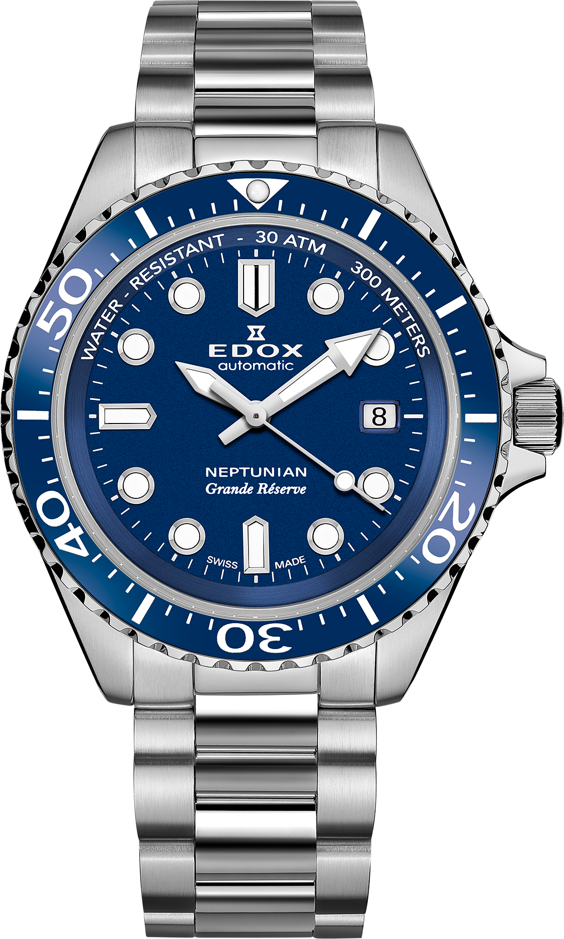 Edox Neptunian Grande Reserve Date Automatic er en imponerende dykkerklokke fra Edox som kombinerer robust konstruksjon med elegant design.