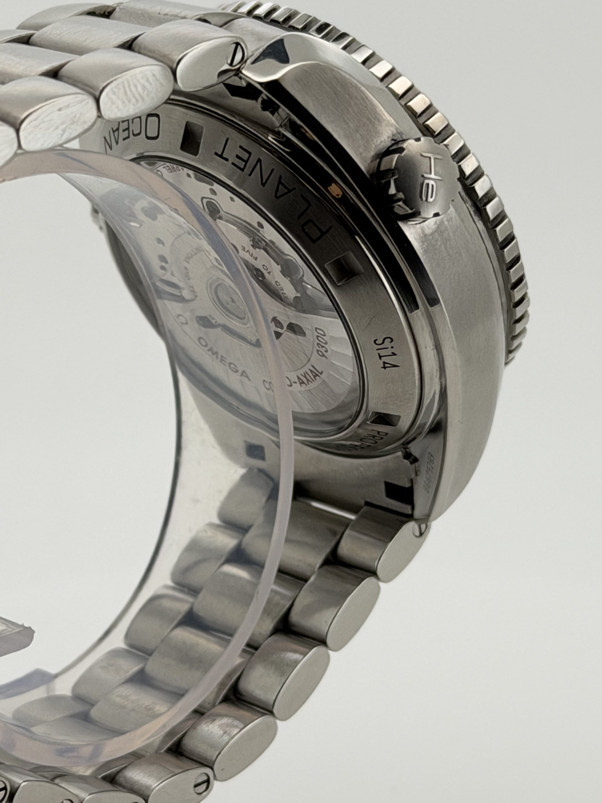 Planet Ocean-serien ble lansert som Omegas moderne profesjonelle dykkerlinje og bygger videre på arven fra Seamaster-modellene som ble kjent gjennom både militær bruk og James Bond-universet. Denne modellen kom med Omegas in-house Caliber 9300, et avansert Co-Axial kronografverk med kolonnehjul og høy presisjon – regnet som et stort steg opp teknisk fra tidligere generasjoner. (WatchBase.com)