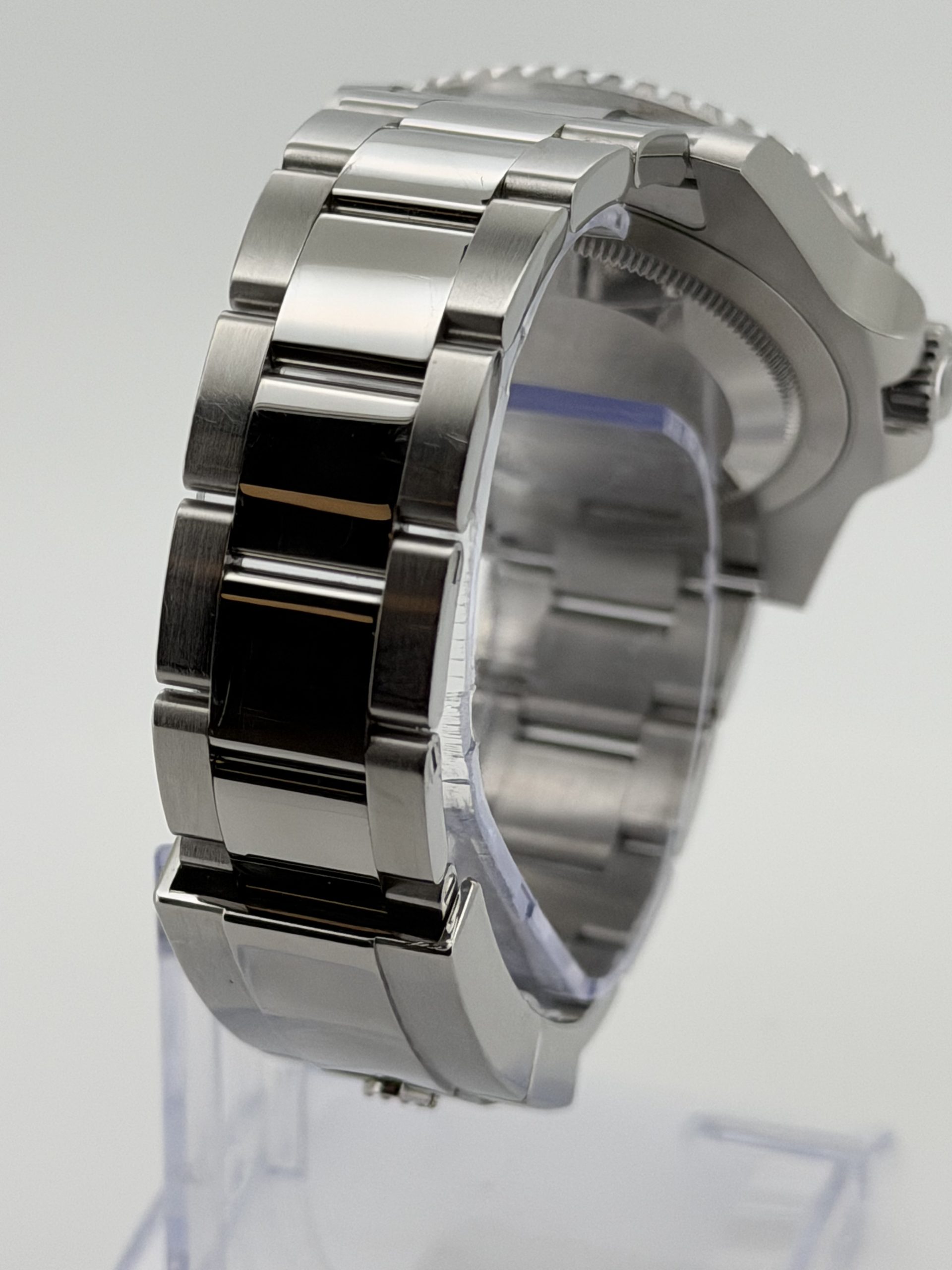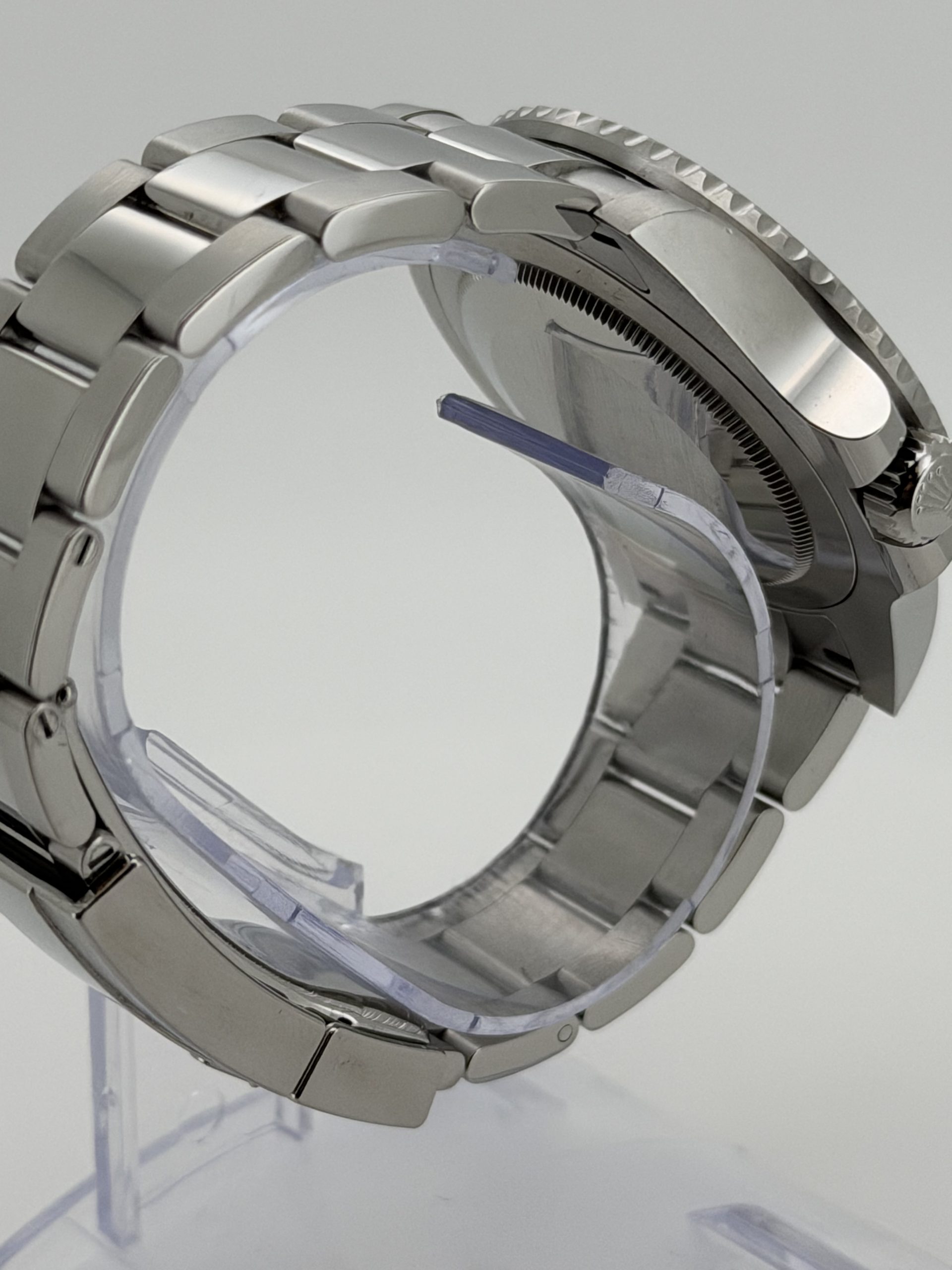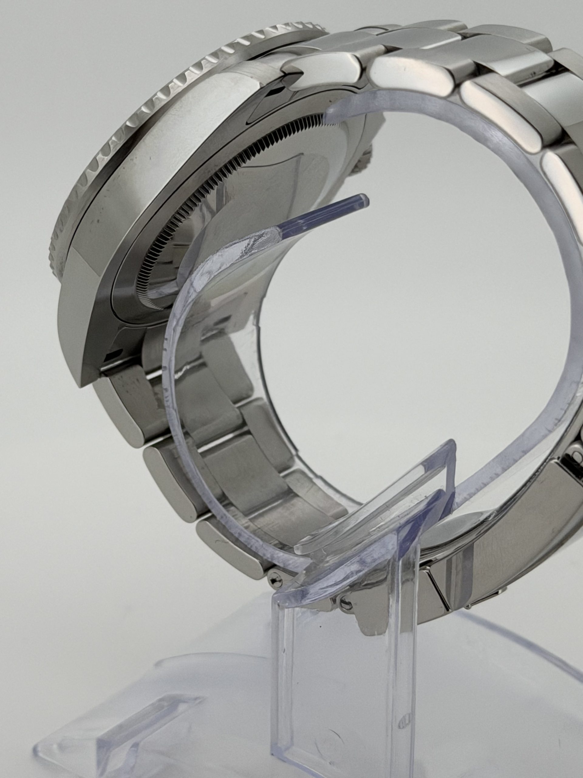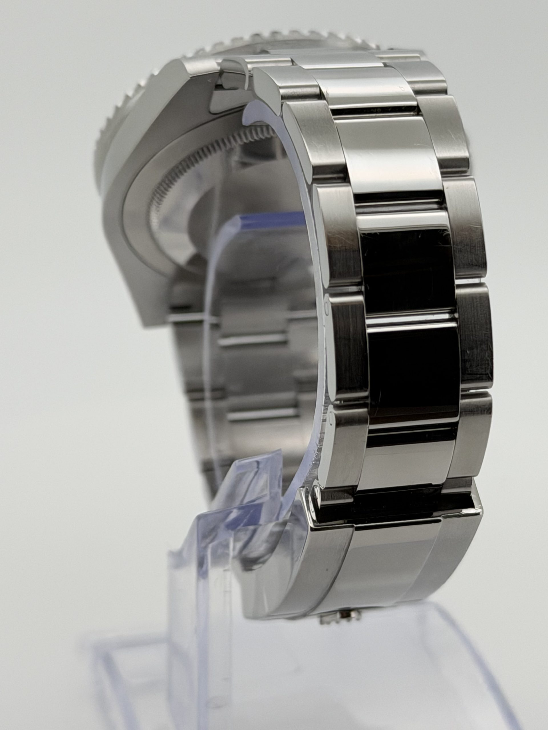Dette er den spesielle venstrehendte GMT-Master II med krone på venstre side av kassen og dato på kl. 9. Modellen ble lansert i 2022 og fikk raskt kallenavnet “Sprite” blant samlere på grunn av den karakteristiske svart/grønne Cerachrom-bezelen. Den unike layouten og relativt korte produksjonstiden har gjort modellen svært populær blant entusiaster og samlere.